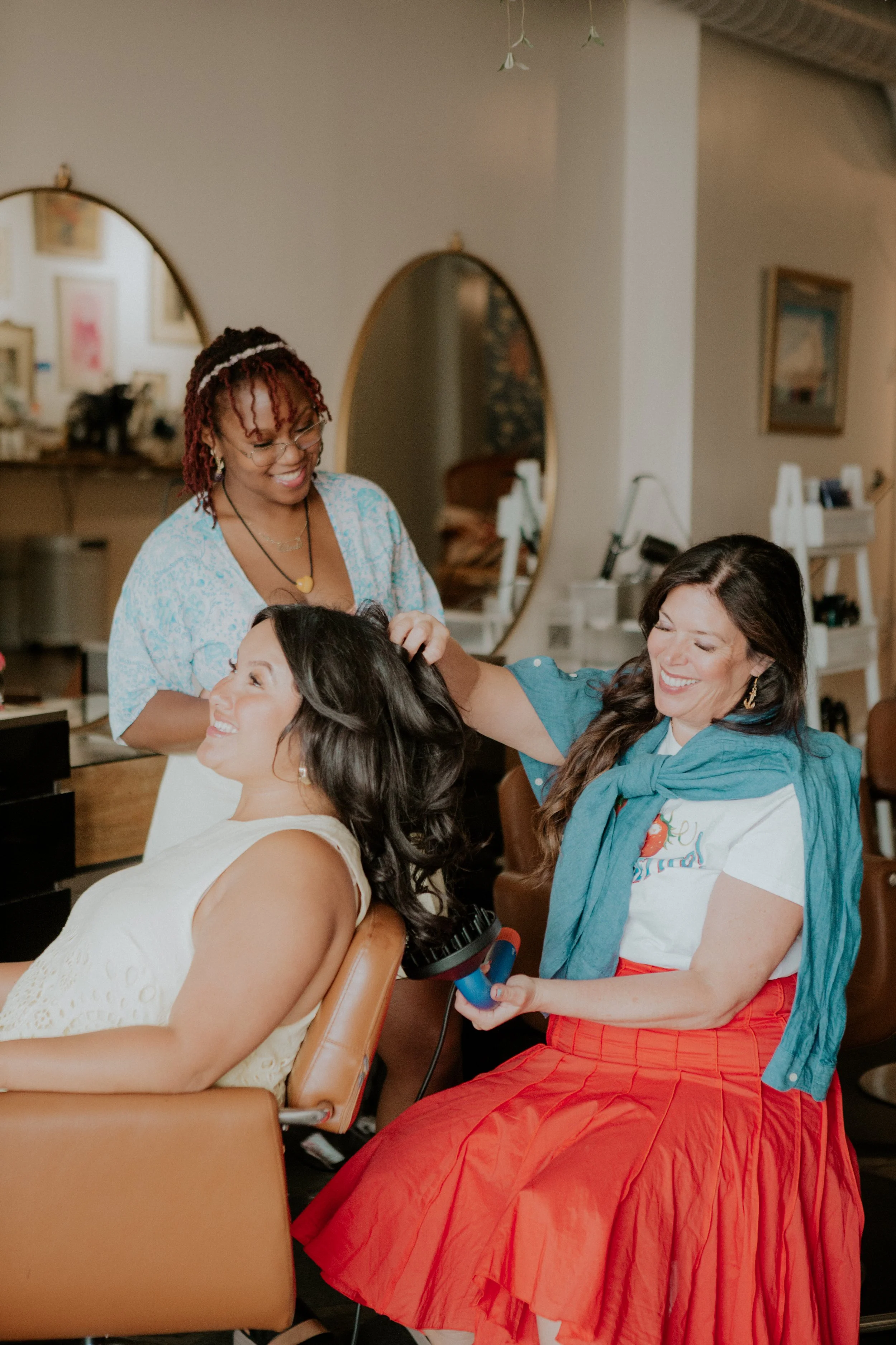 Ashley Clarke is the Owner of Fringe Collective, Master Stylist & Educator. Stephanie Rittenhouse is a Master Stylist, Curly & Short Hair Specialist. Laura Hincapie is a Hair colorist & Operations Manager who helps oversees the salons day to day logistics. Pearl Commodore is a hairstylist who specializes in transformations, barber cuts and building relationships with her clients.